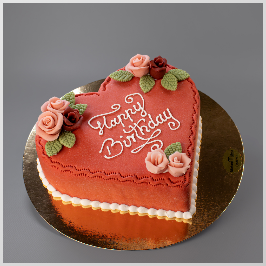 Torte in Herzform 24cm; mit Kremfüllung nach Wunsch & mit rot gefärbtem Marzipan eingedeckt